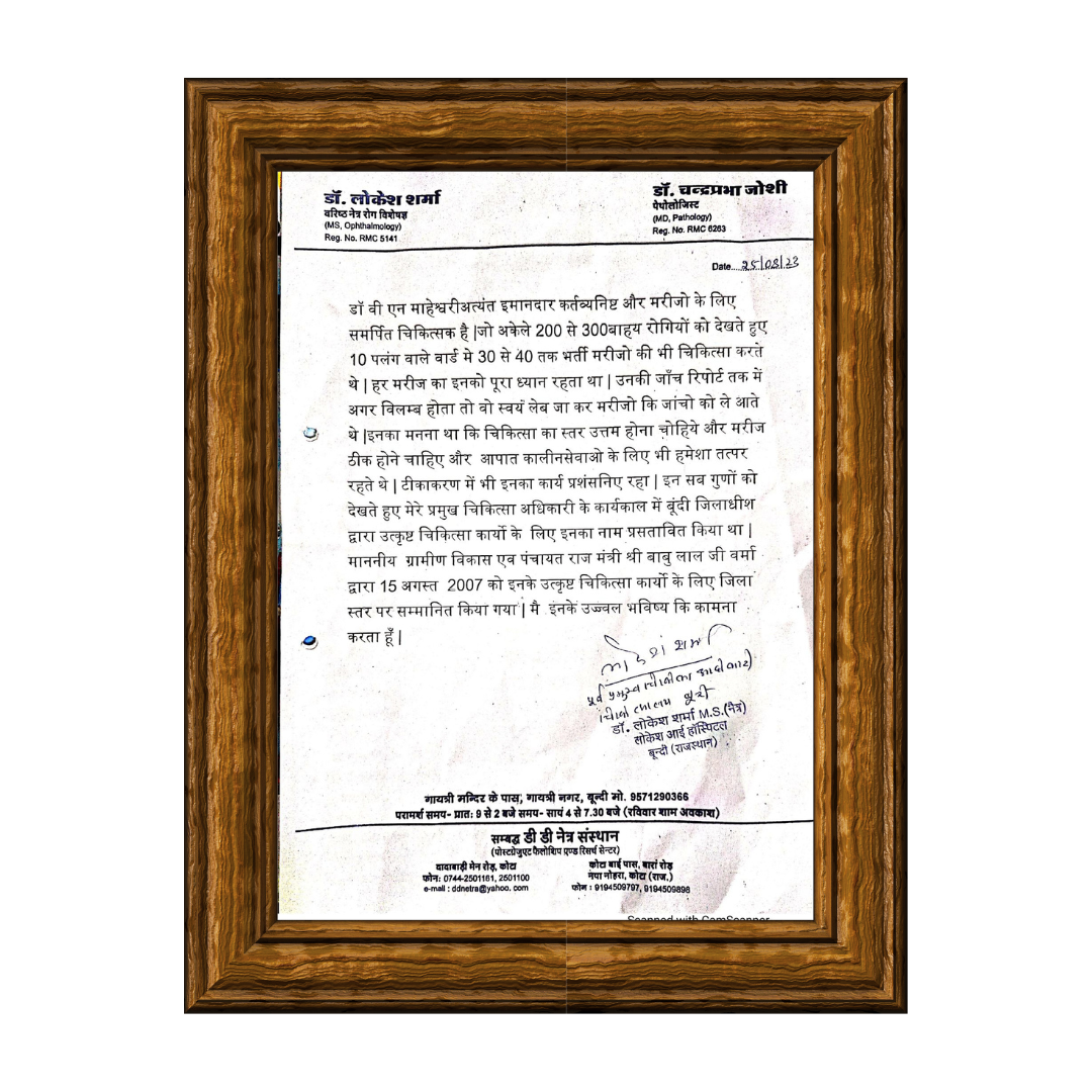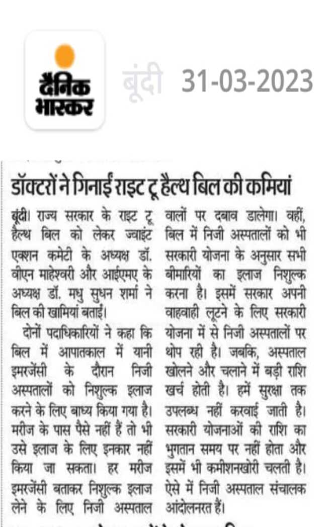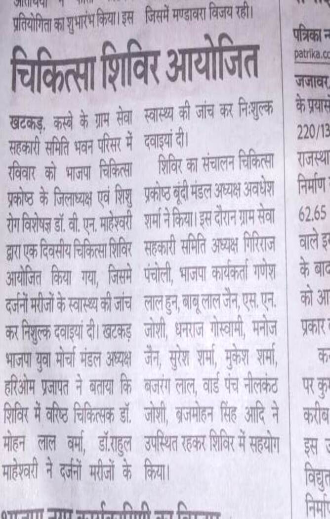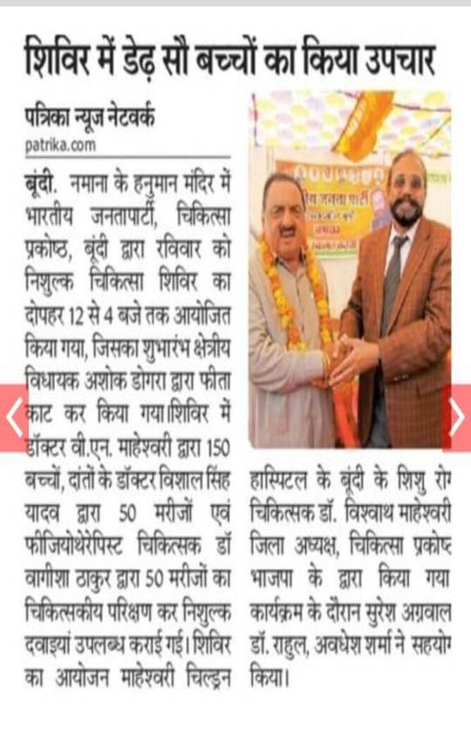 एम. डी. पीडियाटिक्स भारतीय जनता पार्टी जिला चिकित्सा प्रकोष्ठ संयोजक बून्दी