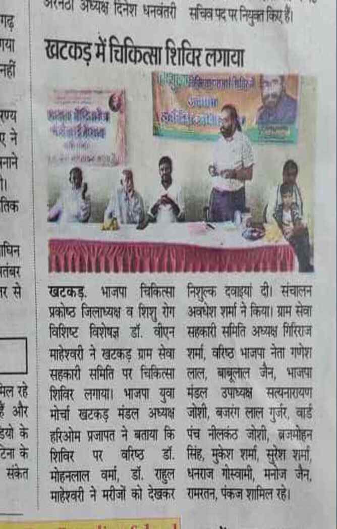 मै सन 2011 से भारतीय जनता पार्टी का सक्रिय सदस्य हूँ तथा गत 26 वर्षों से जिला अस्पताल बून्दी मे शिशु रोग विशेषज्ञ की हैसियत से रोजाना असंख्य निर्धन एवं असहाय बिमार बच्चो को चिकित्सा सेवा दे रहा हूँ एवं राजकीय और एन० जी०ओ० के माध्यम से दवाईयाँ, जाँचे एवं ब्लड उपलब्ध करवाता हूँ तथा इस क्षेत्र में निः शुल्क चिकित्सा शिविर का आयोजन भी करता आ रहा हूँ।